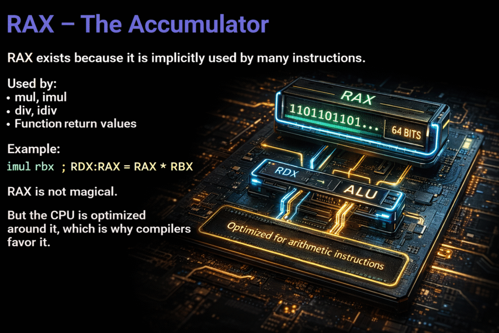 RAX exists because it is implicitly used by many instructions.